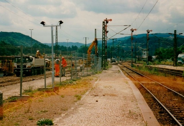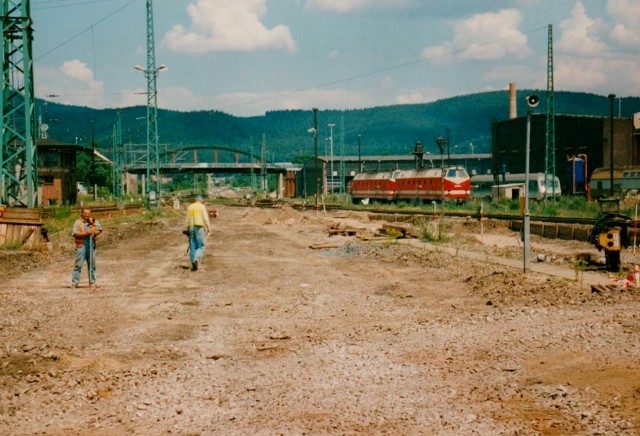 Nicht nur personelle Veränderungen traten in Saalfeld zu Tage auch bauliche Veränderungen und Modernisierung der Bahnanlagen waren an der Tagesordnung. Mit dem Verkehrsprojekten Deutsche Einheit begann der zügige Umbau der Franken- und Saalbahn ab Hochstadt-Marktzeuln bis Großheringen / Saaleck auf ca. 150 km Länge. Auch auf der Frankenwaldbahn waren die Auswirkungen des zweiten Weltkrieges sowie des Kalten Krieges sichtbar. Zurückgebaute Bahnanlagen und Eingleisigkeit. Lediglich Förtschendorf-Ludwigsstadt war ein zweigleisiger Streckenabschnitt. Mit dem Umbau des Bahnhofes in Saalfeld, der relativ kurz nach der Wende erfolgte, kam Saalfeld strukturiell noch "gut weg", es war noch Geld und Sachverstand vorhanden. Wenige Jahre später wäre der Bahnhof einem "Radikalen Rundumschlag" zum Opfer gefallen, nach Gründung der DB AG. Grundstrukturen der Gleisanlagen blieben noch zum Teil erhalten bis auf die "Verschlankung" der Ein-und Ausfahrten und Weichenverbindungen was aber positiv gesehen einer höheren Geschwindigkeit sowie den Fahrzeiten geschuldet war. Es ist schon ein Unterschied wenn durchfahrende Züge mit 40 km/h ein und ausfahren mit bis zu 700 Meter Zuglänge oder mit 100 bzw. 60 km/h und dazu noch ohne Halt. Eine Durchfahrt war mit der alten Stellwerkstechnik nur in Gleis 3 und 4 möglich für die 300er Züge Berlin-München bzw. für Eilgüterzüge.
