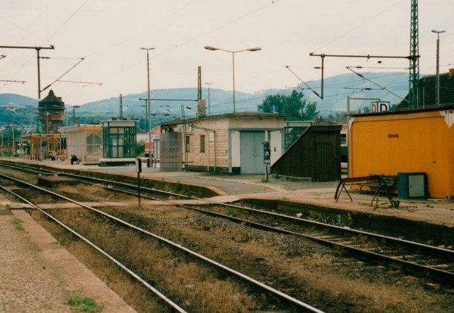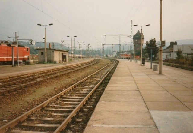 Übergang für Fahrgäste D 300 nach Berlin bzw. mit Umstieg in Probstzella P 5002 "Abbringer" DR Binnenverkehr nach Saalfeld