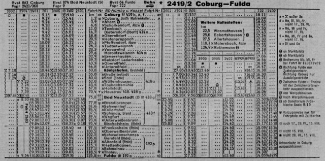Völlig unscheinbar aber denoch interessant war die Bahnbuslinie der OVF von Coburg nach Fulda bzw. nach Würzburg und zurück. Diese Linien wurden auch von Fahrgästen aus Thüringen genutzt, gerade in den Morgenstunden. Bestand doch in Fulda bzw. Würzburg Anschluß an IC Verbindungen ins Ruhrgebiet bzw. nach Norddeutschland. Neben den "Bummelbussen" verkehrten auch Eilbusse mit attraktiven Anschlüßen und Fahrzeiten.
