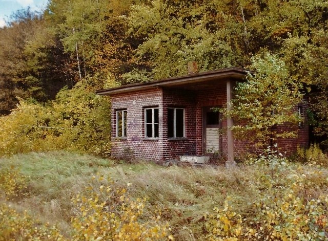 Ca. 1 Meter hinter dem Falkenstein verläuft die Landesgrenze, die Mitten durch Gebäude und Anlagen verlief, deren Bestand geduldet wurde. Im gleichen Atemzug wurde das Turbinenhaus und das Bahnwärterhaus bei km 166,4 abgerissen auf Befehl der Militärs.