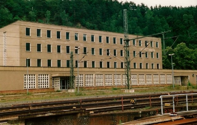 Links das Militär und Grenzgebäude zur Bewachung des Schienenüberganges Probstzella - Ludwigsstadt.