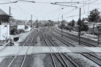 Blick vom Bahnübergang Falkenstein in Richtung Grenzbahnhof Probstzella 1966.