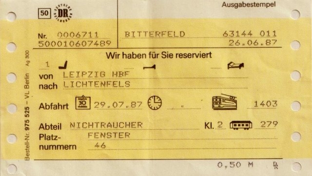 - Verkauf von Fahrkarten der DR in Grenznähe zur Bundesrepublik wurden nur mit Passierschein- bzw. Personalausweis Nummern Eintrag verkauft