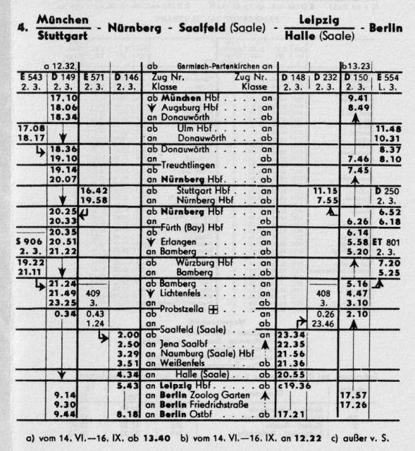 1.) Schnell -, Eil-, Güterzüge ab Probstzella bis Pressig Güterzüge wegen Zollabfertigung) , Nürnberg Hbf, Nürnberg Rbf, Nahverkehrszüge von Bamberg, Lichtenfels nach Kronach, Pressig, Ludwigsstadt und Falkenstein (Zonengrenze)