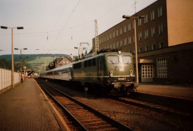 Man könnte bis Rom diese Postkartenreise fortsetzen dem einstigen europäischen Endpunkt der Linie Berlin - München - Rom. Doch möchte ich es im "20 000 Seelen" Städtchen Lichtenfels beenden, einem mittleren Durchgangsbahnhof der immer irgendwo in den Betrachtungen aussen vorblieb obwohl er für den Bahnverkehr überhaupt nicht unbedeutend war und ist. Lichtenfels einst der Scheideweg für Züge zur Nordsee, nach Leipzig / Berlin, nach Hof / Chemnitz / Dresden sowie nach Schlesien und Böhmen. Südlich über Nürnberg nach München, Alpenregionen, Italien sowie nördlich über die Werrabahn bzw. südlich über Schweinfurt nach Hessen, Ruhrgebiet, Niederlande u.s.w. Zentral gelegen von Lichtenfels kam und kommt man in alle Richtungen und Landesteile mit der Eisenbahn. Bedeutend im Reiseverkehr so war Lichtenfels nicht nur für die Industrie der Region bedeutend auch für das Sammeln, Verteilen von Güterwagen in alle Richtungen. Mit dem Umbau des Bahnhofes erhielt Lichtenfels zahlreiche neue Gütergleise, Gleiserweiterungen und eine Vergrößerung der Ladeanlagen, Rampen und der Ladestrasse entsprachen dem gewaltigen Verkehrsaufkommen. Auch im Post-, Gepäck- und Expressgutverkehr hatte Lichtenfels eine hohe Bedeutung bis 1995. Erweiterung auch auf zwei Rampengleise der Güterhalle mit jeweils 10 Wagen Länge läßt auch die Bedeutung im Klein- und Stückgutverkehr erahnen. Bau und Errichtung eines Ringlokschuppens mit Drehscheibe, Behandlungsanlagen. Ausbau des Ablaufberges und neuer Sammelgleise hinter dem Bw für Güterwagen. Beheimatung von Reisezugwagen im Nahverkehr. Leistungs- und auch Größenmäßig ist und wurde Lichtenfels immer etwas unterschätzt, da viele Fremde plötzlich ganz erstaunt sind das Lichtenfels relativ große Bahnanlagen in jeder Hinsicht besitzt und der Personenbahnhof früher mit sieben heute mit sechs Gleisen die Erwartungen übertrifft. Nicht nur bedeutend für den Fern- und Nahverkehr auch für den Urlaubs- und Fremdenverkehr ist und war Lichtenfels sehr bedeutend auf Grund der zahlreichen Sehenswürdigkeiten in und um Lichtenfels sondern auch entlang an den Strecken ab Lichtenfels, die sich bis Thüringen oder in das oberfränkische Hof ziehen.
